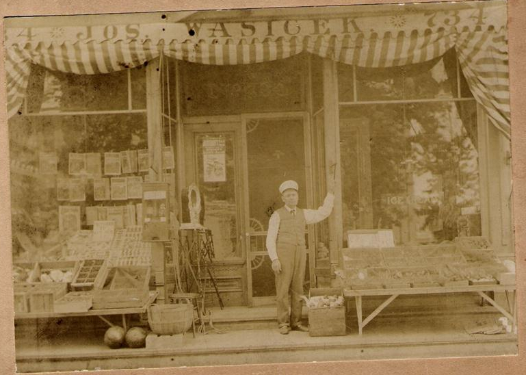 Joseph Wasicek in front of his store