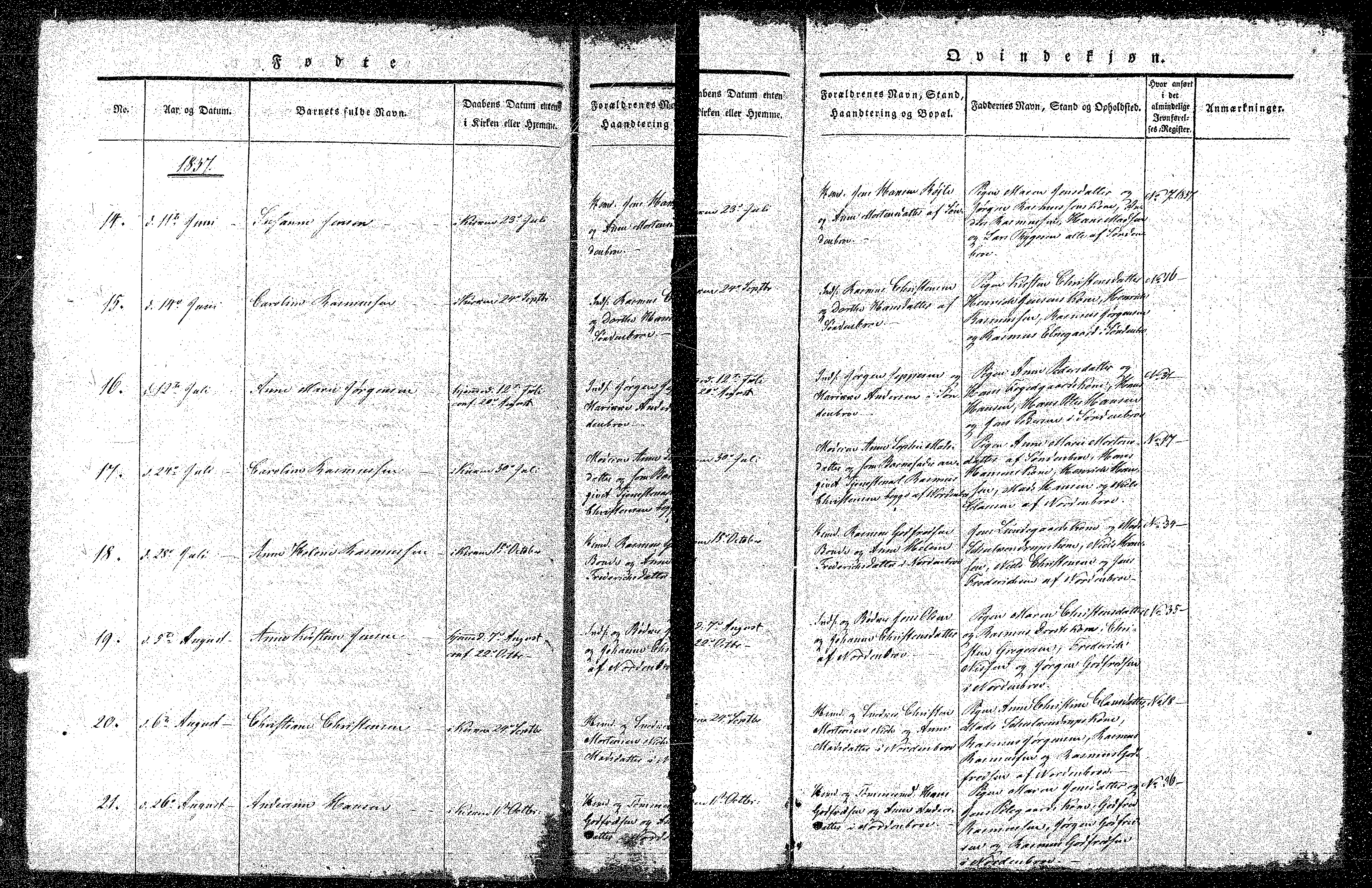 Magleby Churchbook with Christiene Christensen birth
